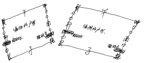 在每一个户形的南面、标出两个方位,一个在中间偏东、一个在中间偏西。请问:有无易学常识的人、能否看明白?
