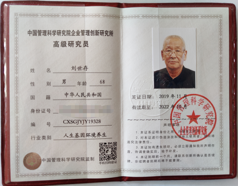 鉴于北京天道易存环境科学研究院院长刘世存在人类探索宇宙自然奥秘,攻克隐态领域、揭开人生密码能量元素及学术理论实践方面的成就,近日经有关部门推荐,中国管理科学研究院评审委员会审议决定增补其担任中国管理科学研究院企业管理创新研究所高级研究员。
