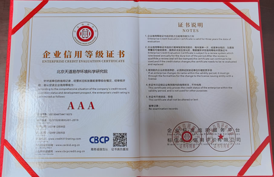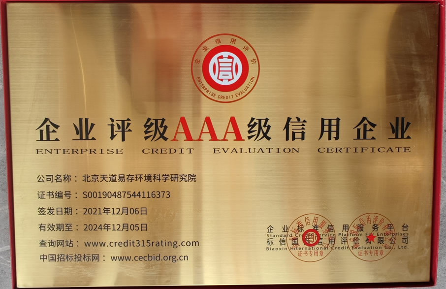 《AAA级信用企业》——北京天道易存环境科学研究院