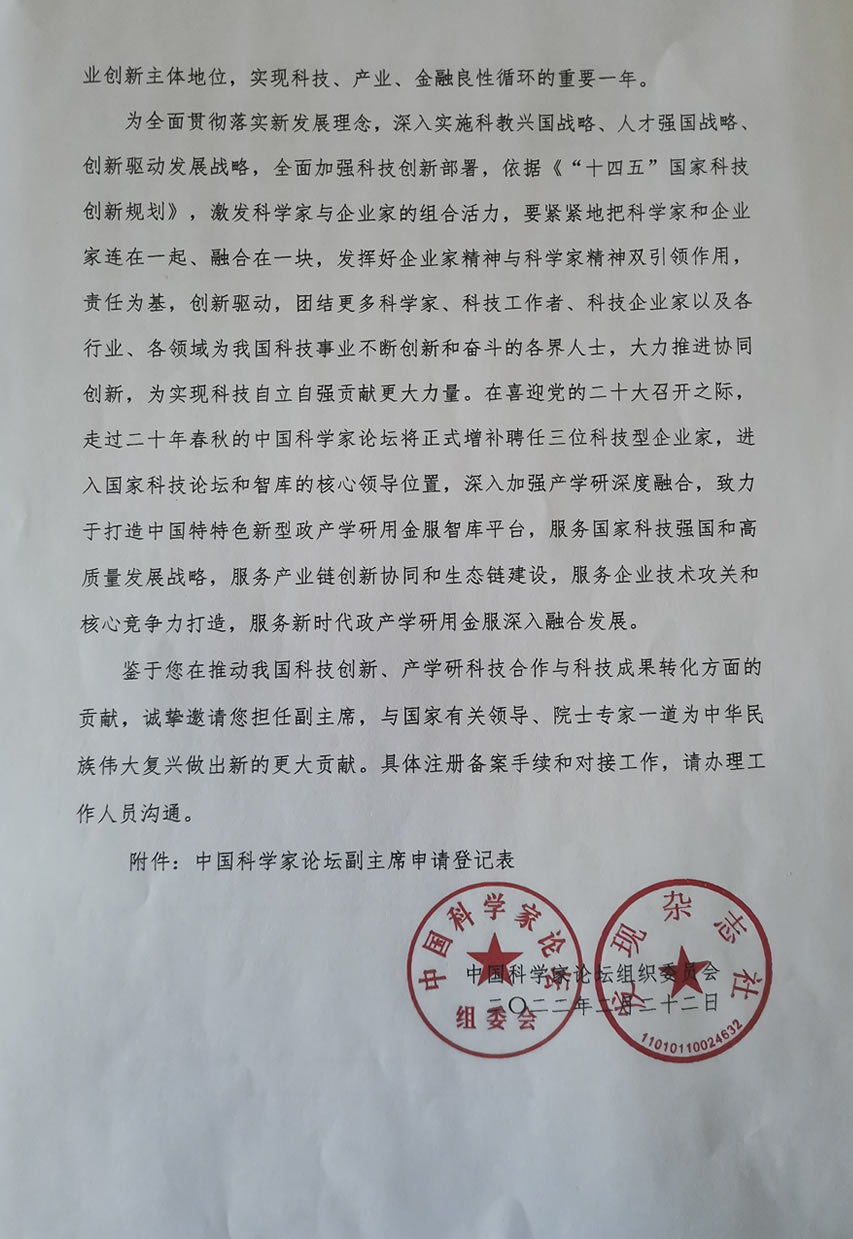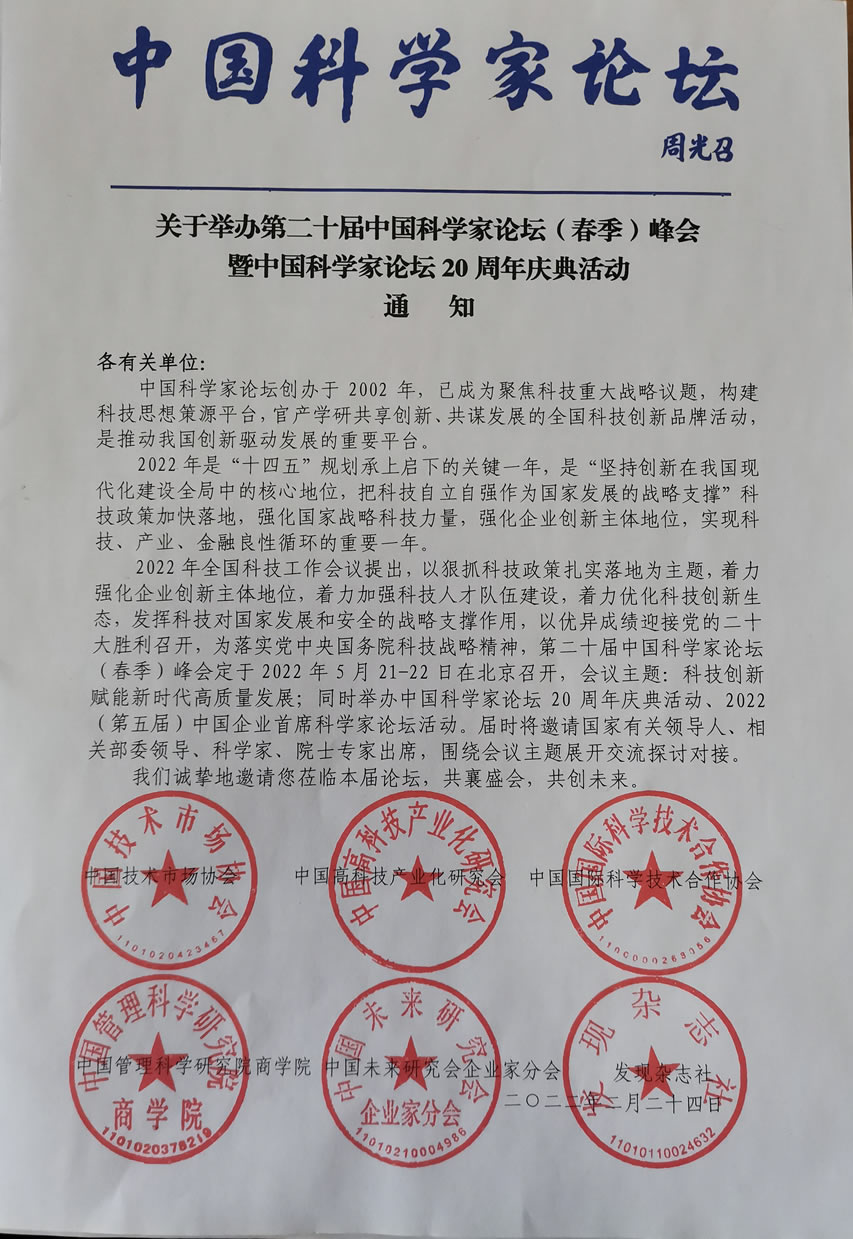 2022年全国科技工作会议提出,以狠抓科技政策扎实落地为主题,着力强化企业创新主体地位,着力加强科技人才队伍建设,着力优化科技创新生态,发挥科技对国家发展和安全的战略支撑作用,以优异成绩迎接党的二十大胜利召开,为落实党中央国务院科技战略精神,第二十届中国科学家论坛(春季)峰会定于2022年5月21-22日在北京召开,会议主题:科技创新赋能新时代高质量发展;同时举办中国科学家论坛20周年庆典活动、2022(第五届)中国企业首席科学家论坛活动。本届论坛将首次邀请著名科学家担任专业论坛主席。届时将邀请国家有关领导人、相关部委领导、科学家、院士专家出席,围绕会议主题展开交流探讨对接。